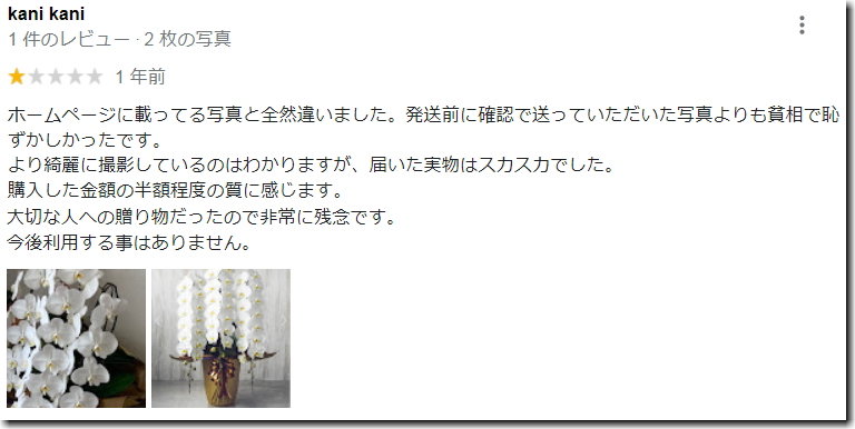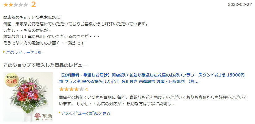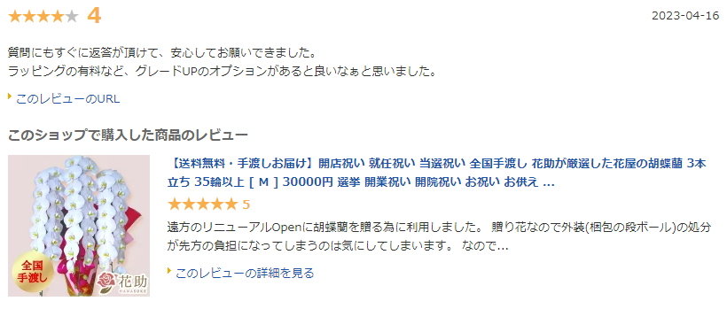 さらに、花の見た目や値段だけでなく、評判を気にされる方も安心できるように、それぞれの花屋を利用した人のリアルな口コミ評価なども載せています。
